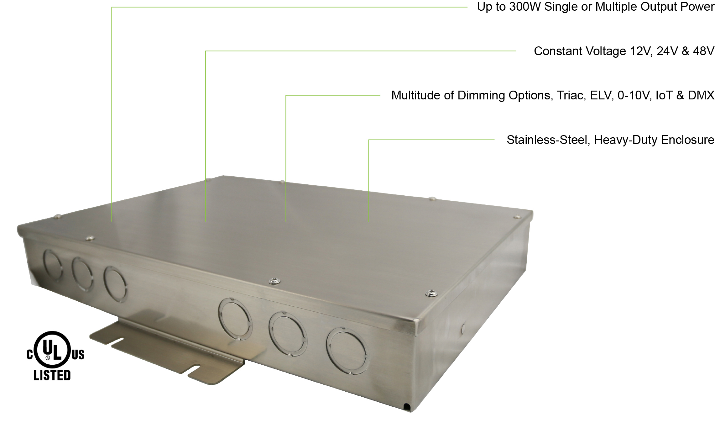 Weather-Resistant: UL listed for outdoor applications built with robust stainless-steel enclosure, these drivers are ideal for challenging outdoor conditions, offering protection against harsh weather elements.